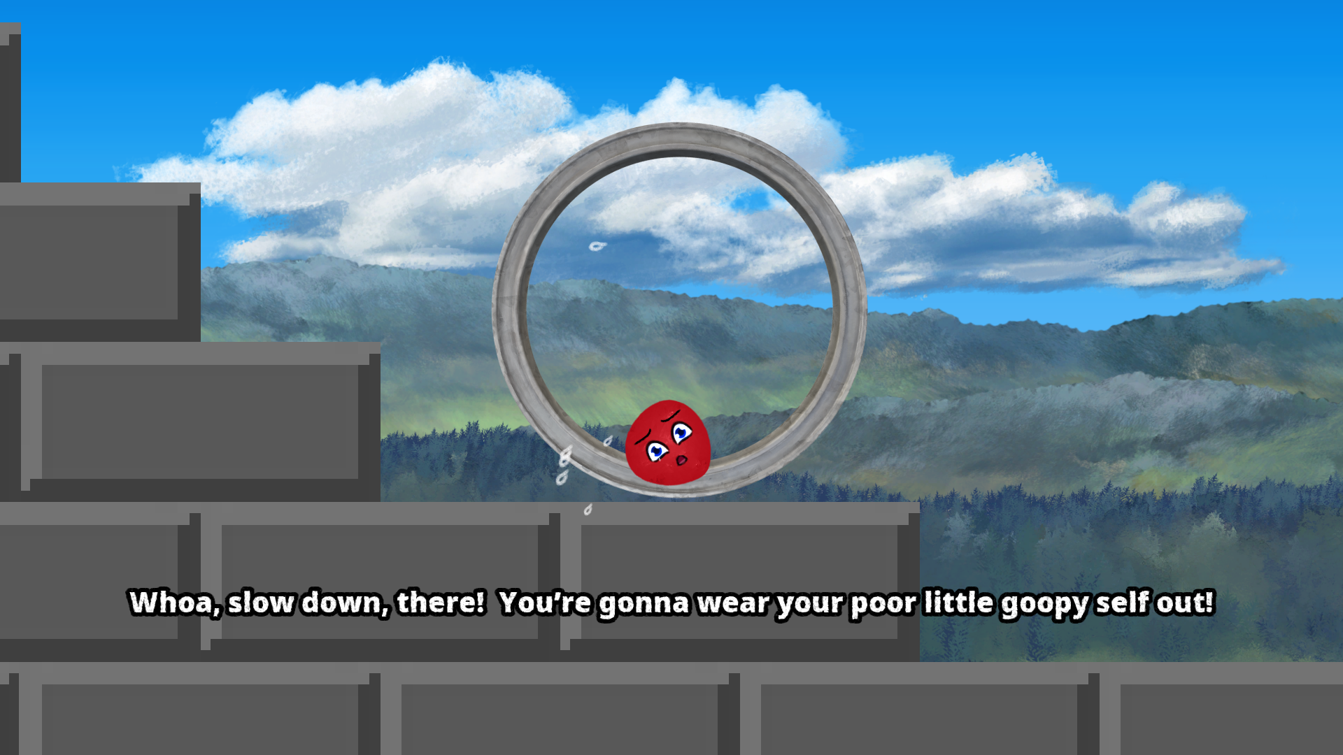 Goop Loop is a physics-based platformer with a simple mechanic that's difficult to master: you jump and stick. Physics does the rest. Imagine a hamster ball, but with a giant booger, or something like that. There's also commentary to egg you on. It's a silly, fun, rage-inducing challenge available on Steam for Windows and Linux: https://store.steampowered.com/app/1454550/Goop_Loop/